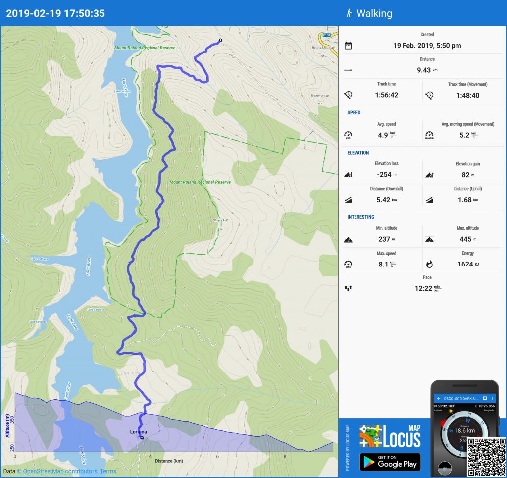 On Tuesday afternoon and evening, it took us less than 2 hours to wind our way gently up the Forth River to the hidden valley of Lorinna. It is a pleasant and relaxing walk in the hills above Lake Cethana. The road is closed now to vehicles but great for walking or mountain bike riding. We enjoyed listening to the birds and the wind in the trees as we wound down after a day at work. The car shuffle was quite long so we didn’t start walking until nearly 6.00 pm. It was just starting to get dark as we walked into Lorinna to collect our car.