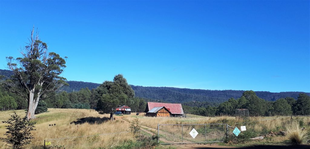 Walking quietly through this idyllic and isolated community we shared stories of people we knew and history of this community. Tim has had a long history of coming to Lorinna. He used to come up nearly every year as a child to the tiny Sunday School Anniversary held in a shed which subsequently was pulled down to become the community centre. He also used to visit the Buddhist community which still operates a retreat centre in the valley. Jessie had friends who had told her of this place so she was fascinated to walk past it.