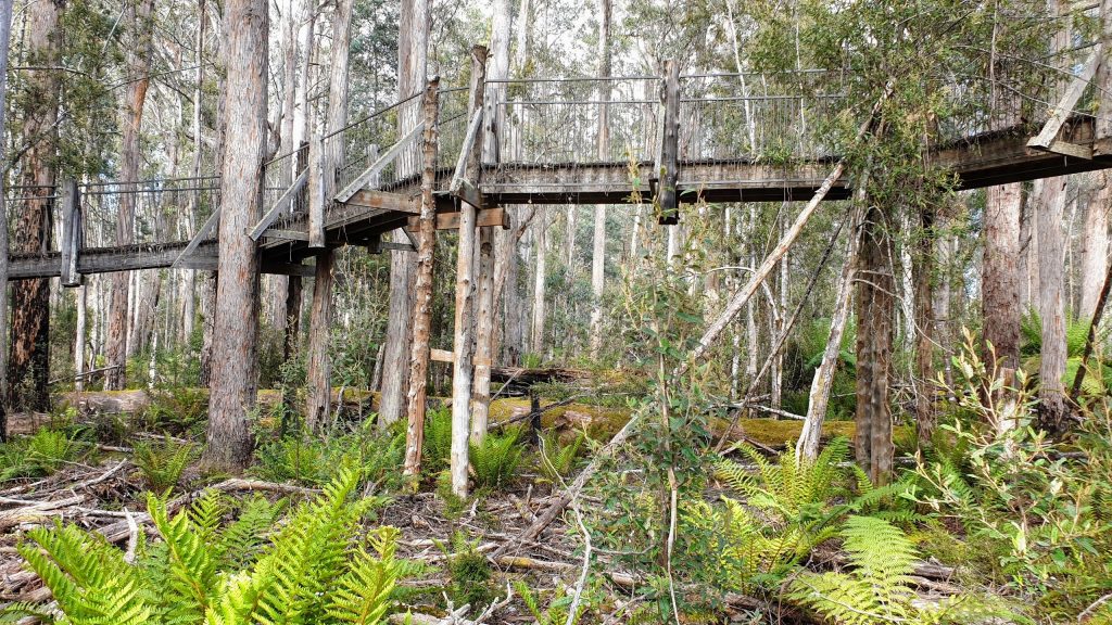 Yesterday morning we drove back to Tarraleah to enjoy a coffee and cooked breakfast at Teez’s Café. We had great walking conditions and set out on the clearly marked trail to Tarraleah Falls. Does anyone know the purpose of these structures, a few hundred meters from the estate?