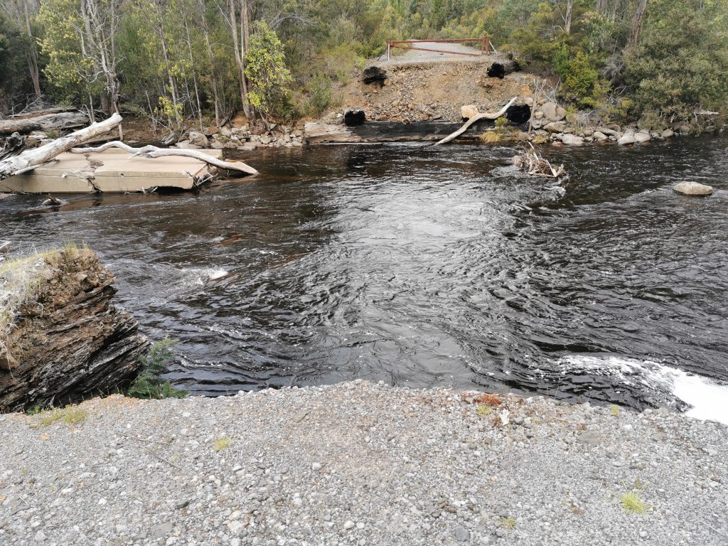 In 2016 the Florentine Bridge was destroyed by fire, presumably due to arson. (See a picture here https://www.abc.net.au/news/2016-06-07/florentine-bridge-on-fire/7486914 ) We had scouted the river last year from the southern side, and since then have hoped that we would be able to ford the river when the time came. We were rather discouraged when we dropped my car off, as the river was high and raging. We decided we needed an angel to get us over.