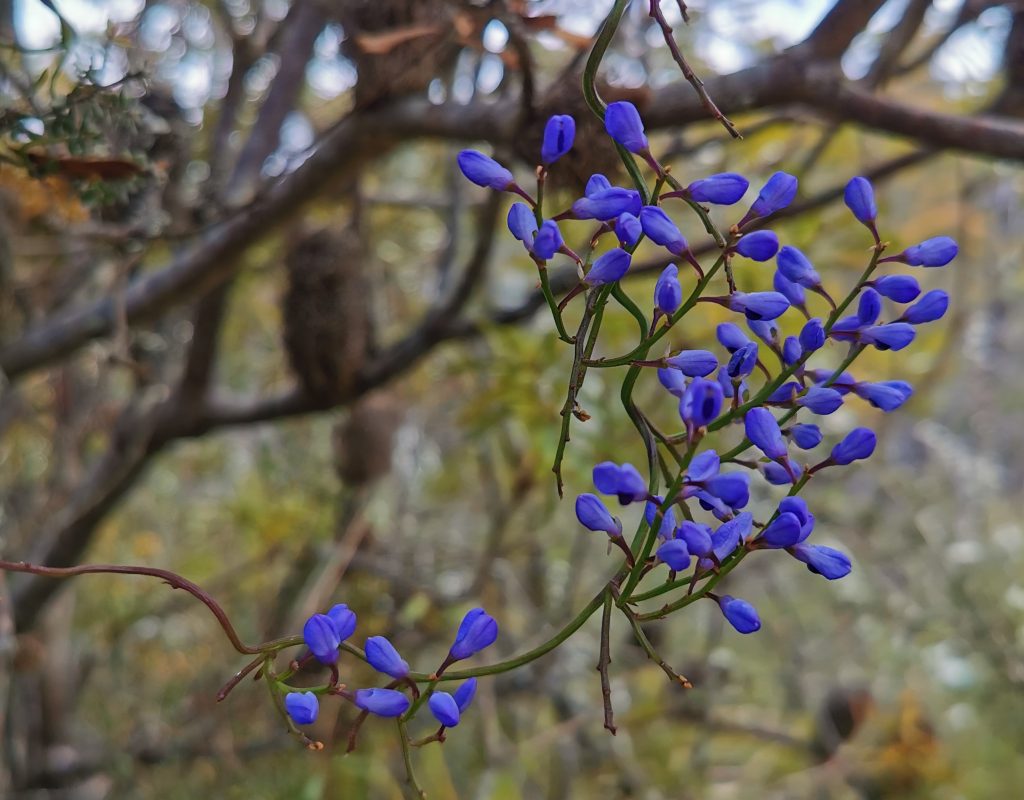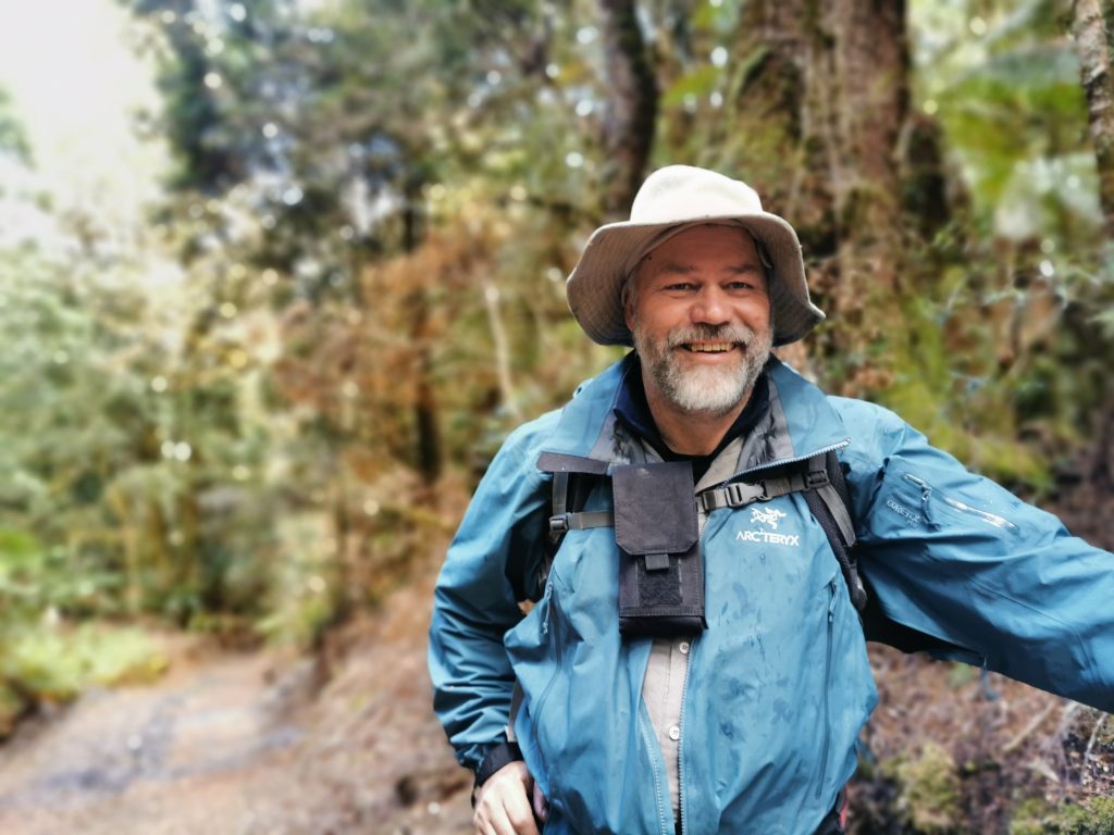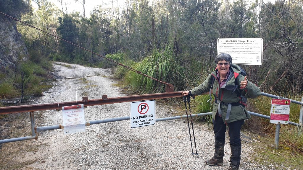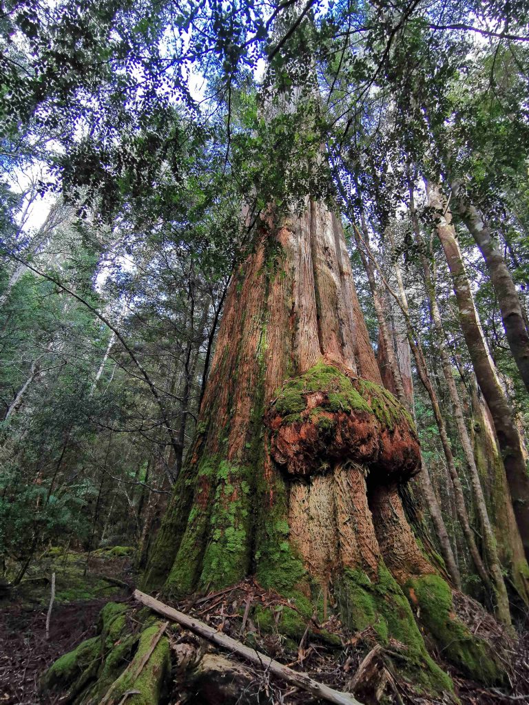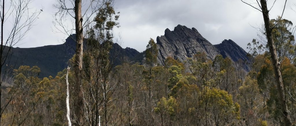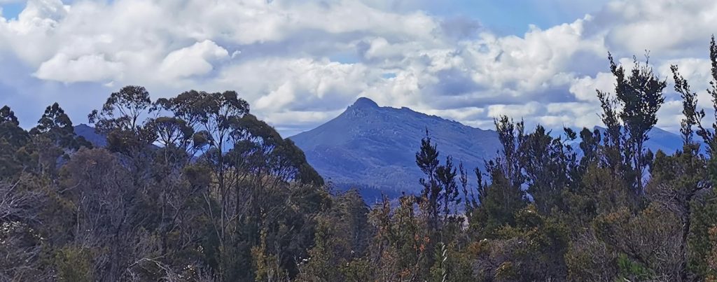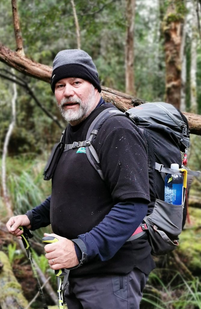 We have looked forward to this stage since scouting it out last year. Some serious off-track navigation was required through the rugged southwest of the state. And it did not disappoint. A 26.7 km day covering a multitude of environments – spectacular deep rainforest, tea tree and wildflower-covered mountain slopes, button grass, the occasional swamp, some challenging river crossings, and patches of the ever-familiar dry sclerophyll forest. Even the weather shared the variety; a cold start at 3 degrees (gloves and beanies), sunny and warm at times (off with the jackets), and two or three rain showers with the requisite sou’westerly cold wind (back on with our waterproofs). All in all, a great day and one to remember.