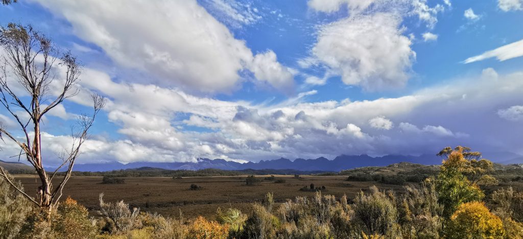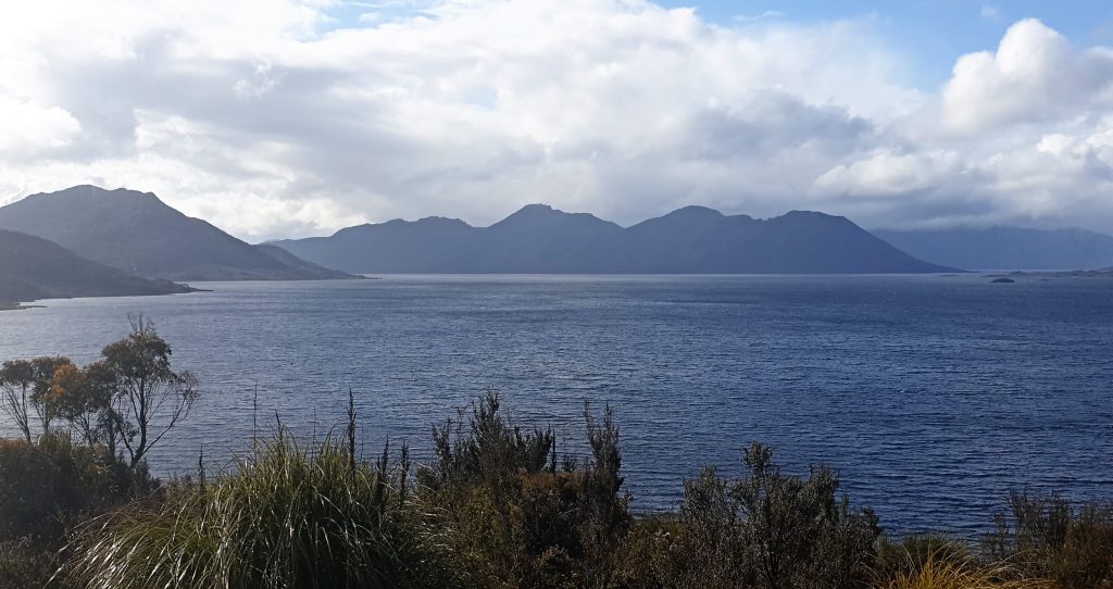 Throughout our traverse, we have realised that we are not only walking through nature and geography, but through the recent history of Tasmania. We have walked through most of the story of hydroelectricity up through the Mersey Forth, down through the Derwent and now the Gordon Pedder system. We have walked old and new forestry tracks, passing active harvesting, seeing signs of carefully managed plantations and also some fairly ugly pieces of destruction. There have been old mining areas, beehives, and new wilderness tourism ventures. For the last few days in particular bushfires have blacked and scarred the landscape. I (Merran) usually listen to ABC Classic while I drive, and this week has featured Katie Noonan’s album, The Glad Tomorrow, based on the poetry of Oodgeroo Noonuccal (aka Kath Walker). It has been a poignant backdrop to my thoughts as we pass through this country on foot.