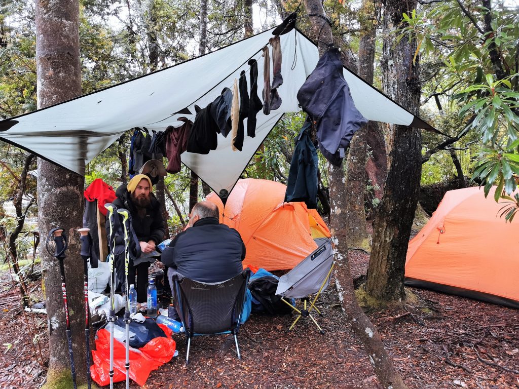 We were through by early afternoon and set up the tarp and tents. Checking an hour or so later, the water level was up and raging, so we were very glad we had made it through when we did. We all snoozed that afternoon, then invited Sarah to join us as we had our evening meal. She had arrived the night before and decided to have a rest day before tackling the legendary Ironbound range. The rain started to ease in the evening and we all settled early for the biggest challenge of the SCT the following day.