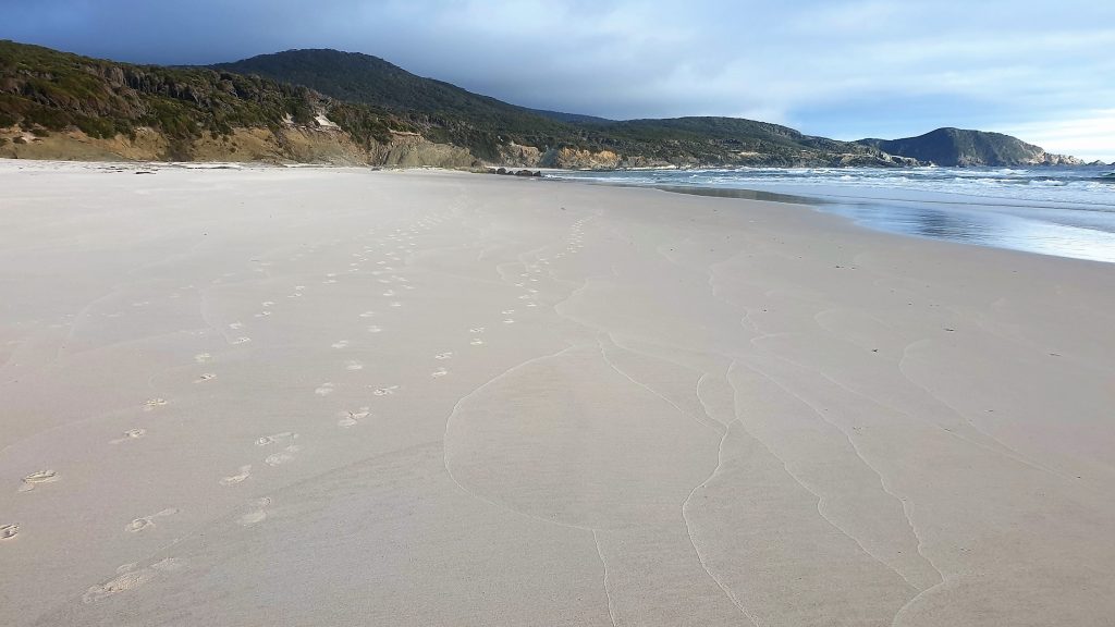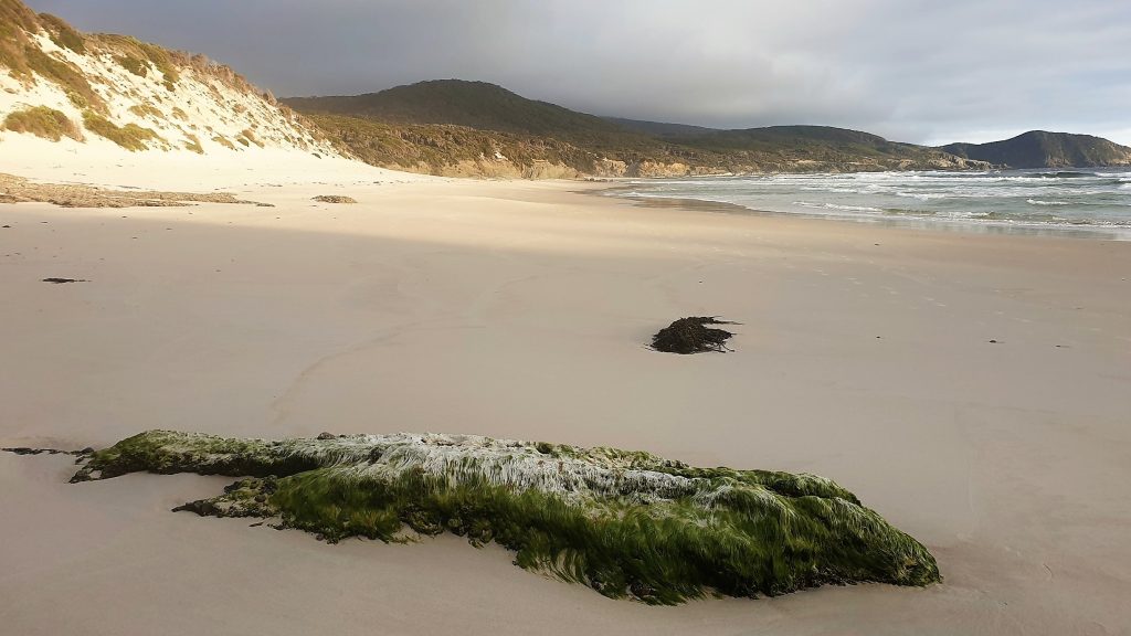 There were a few options for our day’s journey. Some groups have a rest day at Little Deadman’s Bay but we were keen to keep walking. How far would we get? Prion Beach, Osmiridium Beach, or Surprise Bay?